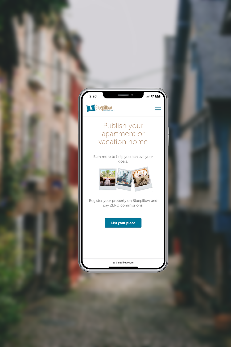 Bluepillow is a travel accommodation search engine based in Italy that allows travelers to compare and book different types of vacation housing such as private rental homes, hostels and hotels. I worked with them as a marketing and brand creative to create a user-friendly interface with soft imagery and homey copy that invited users to list their own spaces and to travel confidently.